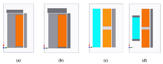 As described in the previous section, two specific geometry variables (d and e) were assigned to the SA and MCA/MMA actuators, respectively, and simulations were then performed to determine the geometry settings which maximized the actuator thrust with the minimal current. Table 3 shows the considered design range for each variable and the value found to maximize the actuator thrust force. Figure 9 shows the models of the SA, MCA, and MMA before and after the modification process, respectively.