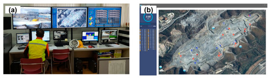 Mine-safety-management system for fleet management of mine equipment: (a) Control center; (b) main dashboard.