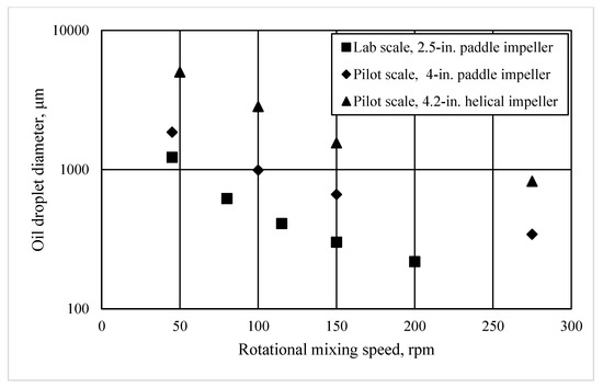 Calculated dispersed oil particle sizes as a function of mixing speed.