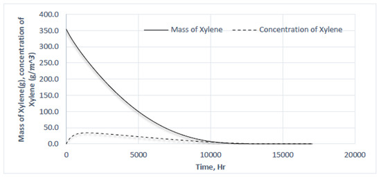 Mass and concentration of xylene particles with Dp = 5000 μm.