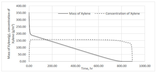 Mass and concentration of particles of xylene with Dp = 200 μm.
