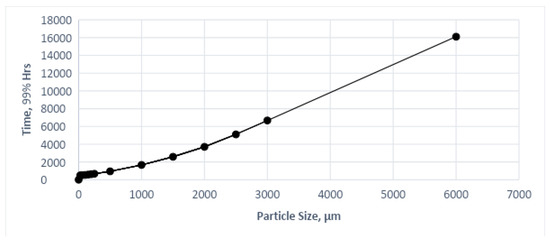 Particle size vs. time for xylene to reach 99% biodegradation.
