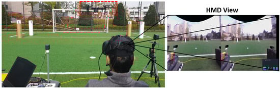 The participants performed each experiment individually. Before starting the experiment, the participants were briefed about the nature of the experiment and provided an introduction and the instructions on how to use GazeGuide and RC to maneuver the camera. After familiarizing themselves with the control methods, the participants sat 14 m away in front of the physical setup in an outdoor environment (Figure 7). They put on the HMD and ensured that it fit firmly. After calibration, the participants were allowed to practice for some time. Once they were confident with the control methods, the experiment was carried out. The participants were also informed that they could stop the experiment whenever they wanted to.