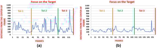 Variation 1: Figure 9 shows the focus precision from the center of the frame to the position of the ToI marker. In variation 1, each ToI was tracked until the completion of its respective pattern.