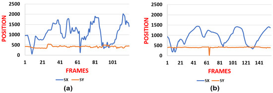 Accuracy: For the effective focus precision analysis of the experiment, unique ArUco markers were attached to the ToIs. These moving markers (highlighted in red in Figure 6) specified the position of the ToI in a given frame by using the frame-by-frame marker detection algorithm (Algorithm 2). Focus precision is the distance between the center of the frame ( 960 × 540 in ) and the marker position.