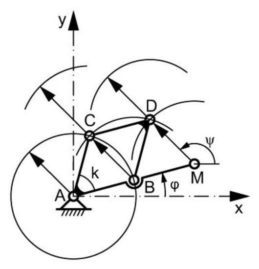 - Artobolevskii, I.I. Teoriya Mechanizmov Dlya Vosproizvedeniya Ploskikh Crivykh; Academy of Sciences of the USSR: Moscow, Russia, 1959; pp. 14–18. [Google Scholar]