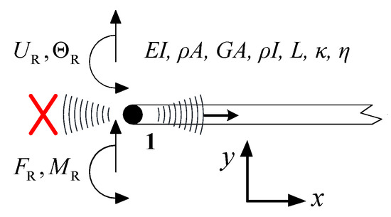 The derivation of SR (ω) is omitted as in the case of Equation (2). Because the derivations of the spectral element stiffness matrixes of the spectral spring element and the Timoshenko beam left-throw-off element follow the same pattern, these spectral elements are not represented for the purpose of conciseness.