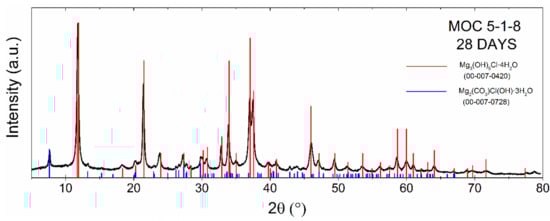 X-ray diffraction pattern of MOC 5-1-8 after 28 days.