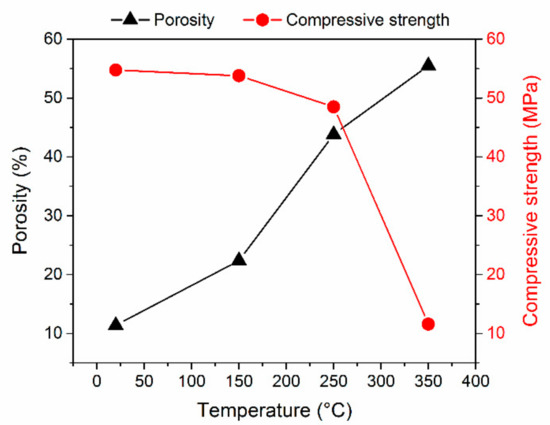 Porosity and compressive strength in dependence on temperature of exposure.