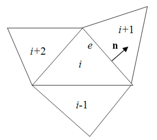 In Figure 1, denote the average macroscopic quantities for the i-1th, …, i+2th triangle grid, respectively, and e is one of the sides for the ith grid, with unit outer normal vector and unit tangent vector .