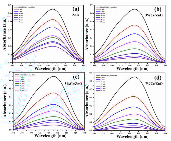 Rodwihok, C.; Wongratanaphisan, D.; Tam, T.V.; Choi, W.M.; Hur, S.H.; Chung, J.S. Cerium-Oxide-Nanoparticle-Decorated Zinc Oxide with Enhanced Photocatalytic Degradation of Methyl Orange. Appl. Sci. 2020, 10, 1697. https://doi.org/10.3390/app10051697
