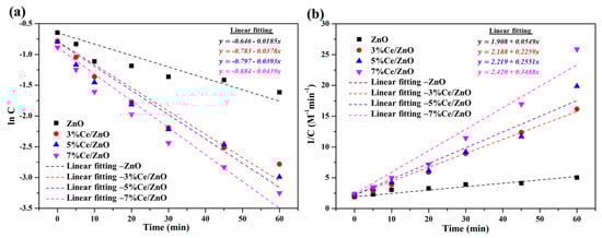 | 7%Ce/ZnO | 0.044 | 0.990 | 0.349 | 0.992 | 94.06 |