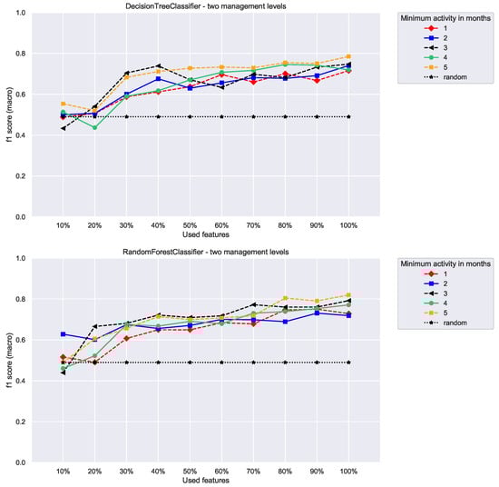 In the literature, there are several works describing the detection of organizational structures. However, most of them use the Enron dataset [] or focus rather on a network approach and omit standard supervised classification algorithms. It should be noted that each organization is managed in a slightly different way which means that communication patterns could differ within each of them. These differences imply that some solutions may give better or worse results depending on the network’s specificity; it is important that studies on an organization hierarchy should not be limited to only one dataset.