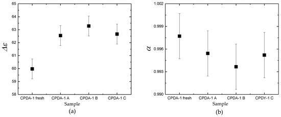 Figure 1a shows the typical dielectric spectra of the storage medium (dielectric spectrum of sample C is plotted) versus fresh CPDA. The relaxation time τ, the broadening parameter α, and the relaxation amplitude Δε of water for fresh/pure and stored medium are demonstrated in Table 1 and Figure 2.