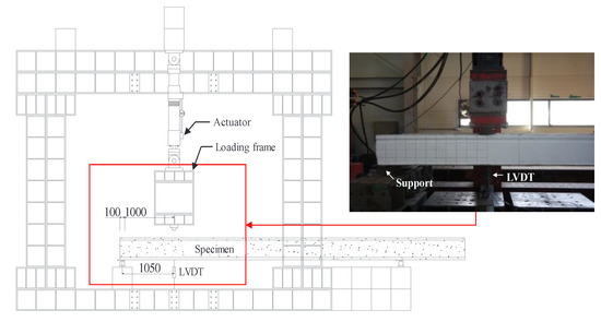 where, is the yield strength of the shear reinforcement, which was 400 MPa. The minimum shear reinforcement ratio () calculated using Equation (1) was 0.127%, and the diameters of shear reinforcements placed in LR-2/4 and HR-2/4 specimens were 8 and 12 mm, which correspond to the reinforcement ratios () 0.175% and 0.395%, respectively.