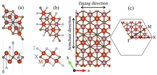 - Khazaei, M.; Arai, M.; Sasaki, T.; Chung, C.Y.; Venkataramanan, N.S.; Estili, M.; Sakka, Y.; Kawazoe, Y. Novel Electronic and Magnetic Properties of Two-Dimensional Transition Metal Carbides and Nitrides. Adv. Funct. Mater. 2013, 23, 2185–2192. [Google Scholar] [CrossRef]