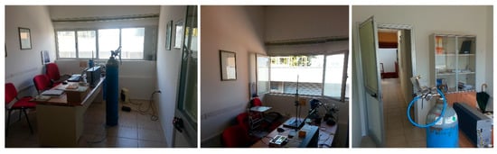 Two offices located in two cities of the Umbria region—central Italy were chosen as case studies. They mainly differ by geometric characteristics (volume differs for about 30%) and by the airtightness class of the window (considered as Class 1–2 and Class 4, respectively). Thirty-three experimental campaigns were overall carried out in different seasons, environmental conditions, and with different room configurations.