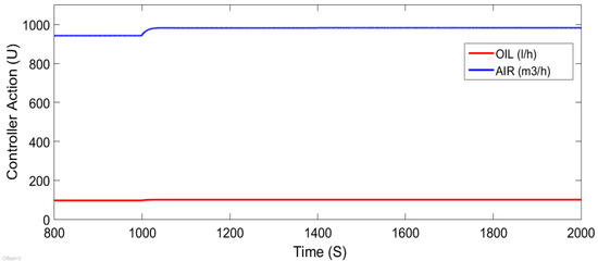 Once again, the results obtained show that the best performance is obtained with the H2-SFC controller due the fact that it shows a greater phase margin and a greater gain margin under the influence of the external step disturbance d(k) of 1 L/h at the fuel flow inlet that feeds the burner.