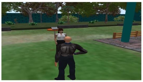 A crucial characteristic of 3D virtual reality platforms relates to the personal and social affordances that users experience. It is pointed out in many studies that an important issue of distant educational platforms concerns the lack of personal and social presence [,]. In order to face this issue in virtual world educational platforms, embodied pedagogical agents can be utilized with the aim to enhance the social interaction with the learners. In educational environments that are based on 3D virtual worlds, pedagogical agents are mainly embodied avatars, which are employed to support students and scaffold the instructional aims []. The integration of embodied pedagogical agents in 3D virtual world educational systems can enhance their intelligence and believability, and most of all, improve the interaction with the students [,]. The main impact of embodied pedagogical agents refers to the enrichment of the virtual learning environments with social aspects, better interaction with the users so as to support more adaptively the learning processes and enhance students learning experience []. In this spirit, pedagogical agents can have a central role in 3D virtual learning environments as they can serve diverse instructional goals and have a wide range of tasks and functionalities []. Embodied pedagogical agents are also utilized to scaffold self-learning by mimicking, to some degree, the role of the tutor. Such entities have also the ability to become learning companions as they can provide guidance and assistance to students during the learning process, []. Embodied pedagogical agents have also great promises for sophisticated, problem-solving assistance through the use of visualization techniques. Moreover, they can enhance students’ learning with the delivery of individualized feedback, and in addition, can engage students in learning scenarios []. An area where the added-value of pedagogical agents is also identified concerns the development of the social and sensual presence (immersion), which leads students to feel and behave similarly to the way that the human-to-human interaction and communication occurs [,,].