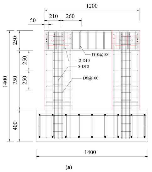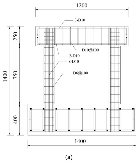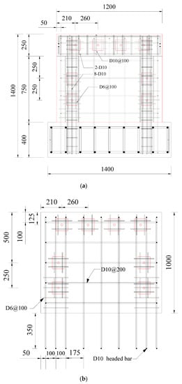 Details of Specimen FBC (unit: mm): (a) reinforcement details of frame; (b) reinforcement details of wall.