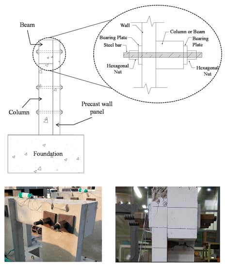 As a large number of RC frame structures with non-seismic details have been severely damaged, many researchers [1,2,3,4,5,6] have investigated the infill wall-strengthening method to improve seismic performance by inserting cast-in-place concrete or precast (PC) walls inside the beam–column frame structure. The infill wall-strengthening method has the advantages that it is cost effective, while greatly increasing shear strength. However, it is not easy to secure the sufficient shear resistance performance of the connection due to the complex connection details between the RC frame and the infill wall; moreover, during the construction period, the use of internal space is very limited. In order to overcome the shortcomings of the conventional infill wall-strengthening method, various strengthening methods have been proposed. Frosch [2] presented the shear key connection details of PC panels to improve the infill wall-strengthening method, and Almusallam and Al-Salloum [3] proposed a strengthening method using the fiber reinforce polymer (FRP). Ozden et al. [4] investigated a strengthening method using CFRP hollow clay tiles, and Baran and Tankut [5] suggested a PC panel-strengthening method using epoxy mortars. This study proposes an advanced seismic strengthening method using the externally anchored precast wall panel (EPCW). The EPCW method proposed in this study can significantly shorten the construction period, because the precast wall panels are connected with the existing frames on the outside of the building. Furthermore, there is an advantage in that the internal space can be used, even during construction. In this study, the specimens of RC frame structures with non-seismic details that are strengthened by the EPCW method are subjected to cyclic loading tests, to verify the strengthening performance of the EPCW. In addition, an analysis method is proposed, and the accuracy of the proposed model is verified by comparing the analytical and test results.