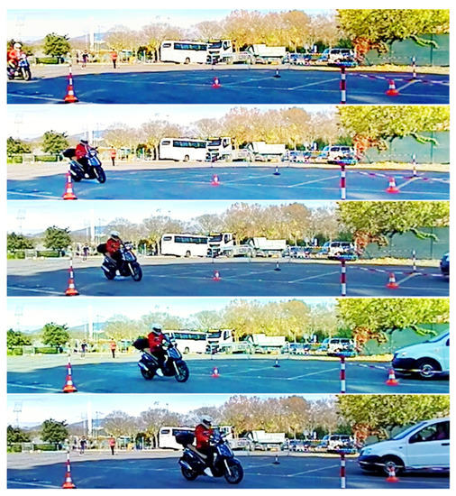 Each participant had to complete 24 trials, including 12 braking trials, with the opponent car turning across their path. Trials in which poor synchronization between PTW and a car were achieved and were repeated once. Finally, this study comprises 165 braking trials to be analyzed.