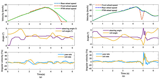 Example of braking trials: (a) full control case; (b) loss of control case.