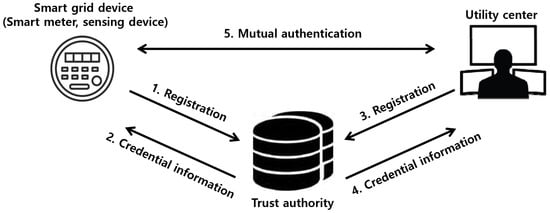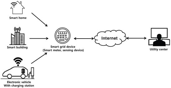 In the past few years, with the advances of information and communication technologies, users can easily access any service provided in various smart grid (SG) environments, including smart home, smart building, vehicle-to-grid (V2G) and advanced metering infrastructure (AMI) [1,2,3,4]. In particular, smart grid using smart device has attracted growing attention from the academia, industries, and researchers. The SG device (sensing device, smart meter, etc.) is one of the core components, which collects various information (electricity consumption, payment, address, etc.) and transfers it to utility centers (power provider, power distributor, etc.) to provide secure, reliable, and efficient power distribution. According to the report of the U.S. Department of Energy (DoE), since 1988, electricity demand has risen by almost 30%. However, the transmission capacity of electricity has only increased by 15% [5]. Therefore, demand-response management has become an important issue to ensure reliable supply of electricity.