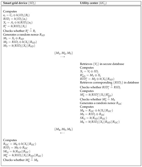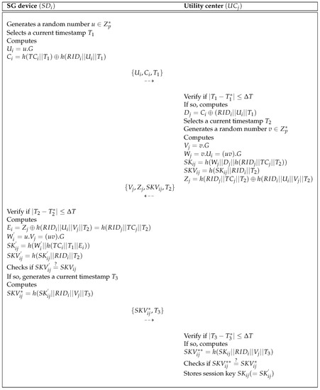 This section reviews Kumar et al.’s authentication protocol for SG system. Kumar et al.’s scheme is comprised of five phases: SG device registration, UC registration, authentication, dynamic SG device addition, and dynamic UC additions. Table 1 summarizes the notation used in the protocol.