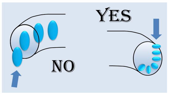 As far as we know, the insertion or the emission of the signal in whispering galleries (annuli or disks) follows in general a path tangential to the major circumference. Indicative references are [41,42,43,44], from the experimental viewpoint, and [45,46], concerning a more theoretical approach. From the results of this paper, it turns out that this procedure would not be optimal, in order to ensure a long-time storage on the information packets. Instead, we believe that photons (of higher frequency) should reach the device from directions tangential to the minor circumference, as depicted in Figure 4. This is also true by virtue of the property stated above in this section, that the closed lines of force of the magnetic field must be strictly contained within the dielectric body, with the aim to reinforce the stability of the stored signal. In any case, we do not have any idea how to technically implement such a result.