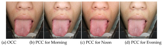 Generally, the lighting condition of a doctors’ consultation room exhibits a high dynamic variation due to many factors, such as windows, sunlight, and lighting. They differ from the simulated lighting conditions in our capture device. Some doctors are not accustomed to the differences between standard lighting conditions and the environments that they are familiar with. When observing the tongue images obtained by the imaging system, their accurate diagnosis will be affected. Therefore, it is necessary to provide a flexible solution to adjust the perceived color appearance of the imaged tongue image according to the doctor’s preferences and keep the objective chromaticity value of the captured tongue image unchanged for further quantitative analysis.