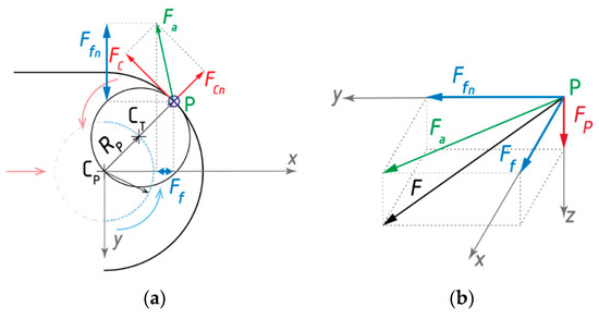 Scheme of the components for total machining force F: in 2D-plan (a) and 3D-side (b) views.