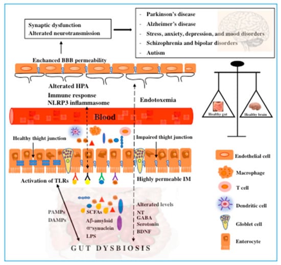 Dysregulation of the gut–brain axis through a complex bidirectional communication system is associated with the pathogenesis of several neurodegenerative diseases [50].