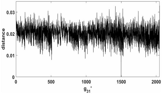 When , the highest similarity was found at 0.0001016 and the second highest was fount at 0.007898 when . This indicates that the difference between the distance of the correct key and the distance of the wrong key is not very large, so that when the noise value becomes large enough, the analysis failure rate rises. To solve this problem, two random variables and can be respectively added to A and B to form a joint distribution using four random variables in total. The use of four random variables magnifies the difference between the correct key and wrong key, which allows the correct key to be guessed with a higher success rate.