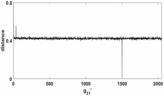In this section, we describe the experimental results of the proposed attack. The experiments were conducted by using simulated power traces under the assumption that the power consumption models follow Equation (8). We assume that the and in Equation (8) are equal to 1 and 0 at all points. We use the parameters and [6] for the analysis. We present the analysis results of the coefficients and , where is the 32nd term of the secret key and is the first element of the support . Although we only present experimental results for when is 1499 and is 999, similar results can be confirmed for other secret key values.