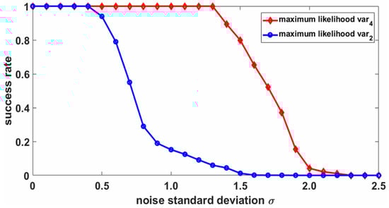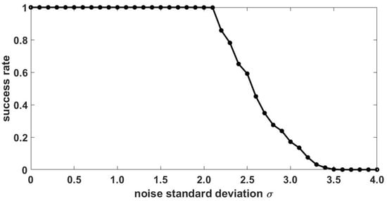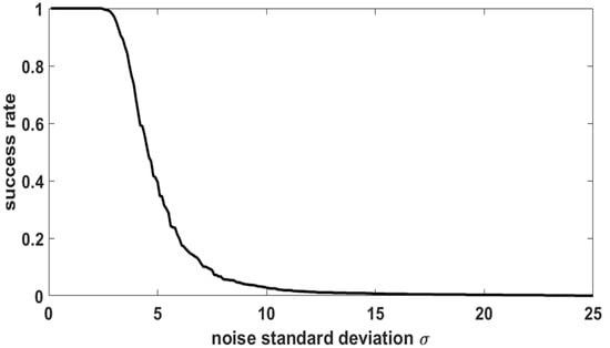 Success rate according to noise standard deviation ().