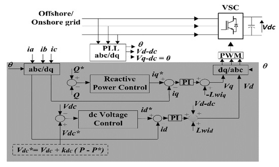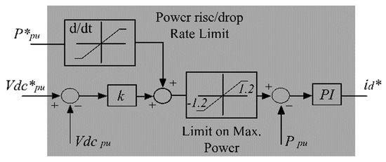 As shown in Figure 1, for assessment of MT-HVdc topology, Vdc and Q are controlled at GS-VSCs. Furthermore, Figure 2 shows a scheme of droop controller, employed to coordinate the direct voltage between GS-VSCs, where P * pu and Vdc * pu are the real power and direct voltage references, respectively. k is droop characteristic slope. Control of Figure 2 is more proficient than customary control and gives the least PI error [33] by adding limiters.