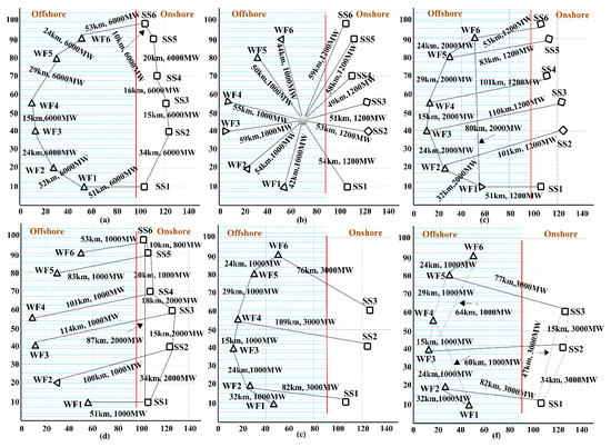 Geographical positions of WF-VSCs and GS-VSCs for topologies.