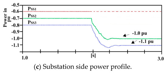MT-HVdc grid and control parameters given in Table 1 are used to evaluate WFRT, 2WF-1SST, and the proposed 2WF-SSRT topologies of the MT-HVdc transmission system. Proportional droop control is employed on GS-VSCs to attain dc voltage control [33,34,35]. Maximum PWF is extracted via Vac and P control on WF-VSCs [39]. CIGRE Bologna DCCB is used for fault isolation and dc inductors of 100 mH are added to limit the rate of rising of dc fault current [40,41]. Fault discrimination time is taken as 5 ms [41,42,43]. Permanent VSC disconnection and dc line–line fault tests are performed under the base power of 1000 MW and 400 kV Vdc.