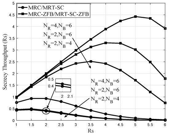 On the basis of SOP, the ST more comprehensively measures the reliability and security of the system in a whole way, which is the product of the complementary probability of and the predetermined secrecy rate (Equation (24), [43]), [44]. Thus, the throughput expression of the two schemes can be written as