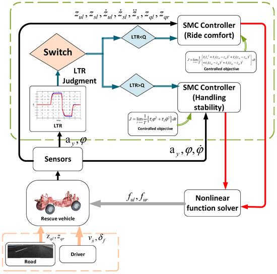 - Hongbin, R.; Lin, Y. Sliding mode control based on improved virtual reference model for damping adjustable hydro-pneumatic suspension systems. J. Vibroeng. 2015, 17, 3196–3210. [Google Scholar]