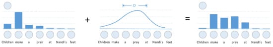 A learnable Gaussian distribution is utilized to model the local context [,] which contains valuable fine-grained information, whose scope is D as Figure 2. Similar to reference [], the setting of scope size relies on the matching result itself. The Gaussian distribution will serve as the regularization term of attention and added to the original distribution.
