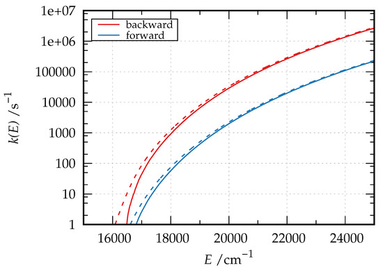 Within the RRKM theory [12,13,14], the microcanonical rate coefficient for the reaction of Figure 3 is given by the equation [28]