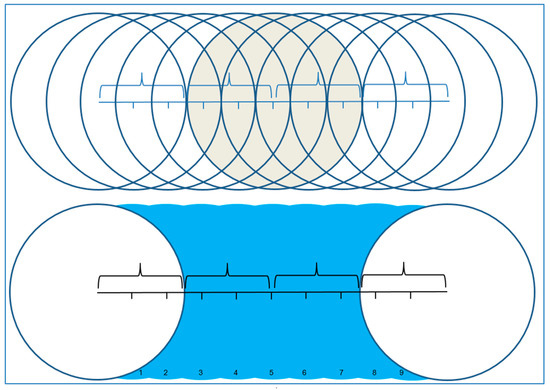 Different for all for two arbitrary clusters (two circles depicted at corners) are depicted in the top picture in Figure 1. Indeed, each is an assumptive region or an assumptive cluster or an assumptive circle. The term in Equation (3) is the set of all data points in the grey (blue in online version) region at the picture presented by Figure 1. The term is center of the assumptive cluster .