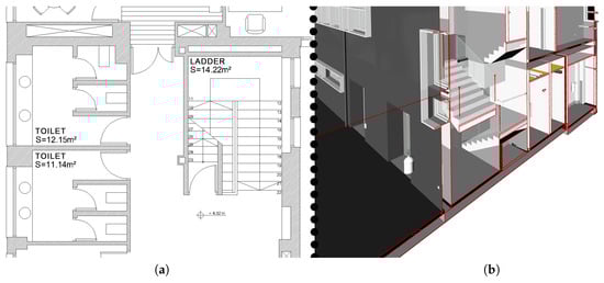 Window-sta irs conflict (a) 2D display difficulty and (b) easy detection in the BIM model.