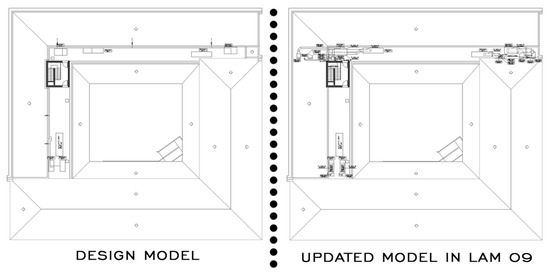 Next, an image of the conflict ID_03 identified in the previous is shown (Figure 7), which reveals how the collision between the false ceiling, the structure and the installations was initially and how it was later, after the coordination of the last planners and agents involved in these tasks, and how through the visualization of the model an efficient solution could be reached in the LAM 09 meeting.
