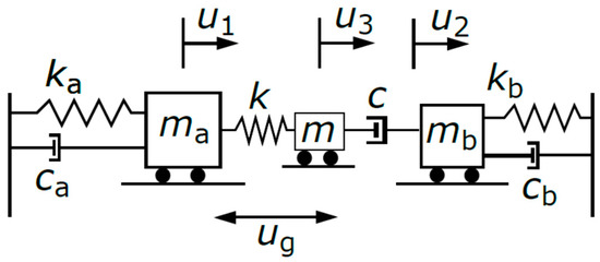While several studies on active and semi-active dampers for pounding mitigation are available in the literature, very few have tested passive TMDs for this purpose. The only work we are aware of in this regard is that of Abdullah et al. [28]. The idea was extended to semi-active TMD by Kim [29]. Abdullah et al. [28] presented the concept of a shared TMD to reduce vibrations and seismic pounding between adjacent buildings. Their optimal solution is to connect the TMD mass with a spring to one of the buildings and with a dashpot to the other building. If effective, this device could be advantageous due to its simplicity and low cost compared to active control schemes. One of the main appeals of this scheme is that the mass of the shared TMD is only half the mass of two TMDs installed on individual buildings.