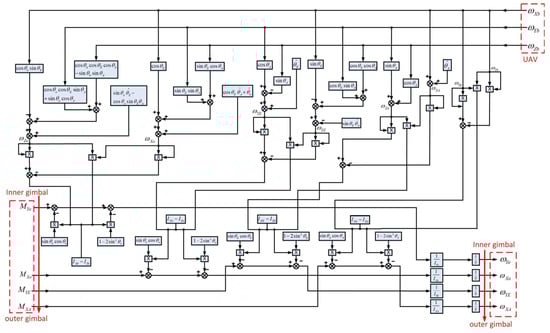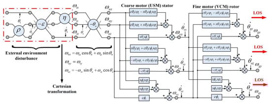 - According to the Euler rigid body dynamics model, the transmission path and kinematics coupling compensation matrix for the two-axis four-gimbal are obtained. The coarse–fine composite drive correction equation of the inner-outer gimbals is derived to solve the pre-selection and check problem of the coarse–fine motors under high-precision control.