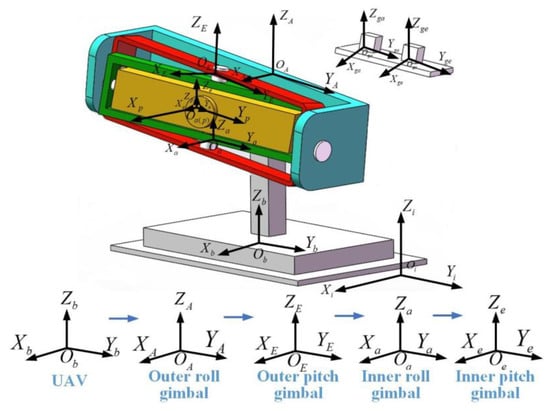 - In the UAV electro-optical pod of the two-axis four-gimbal, the characteristics of the coarse–fine composite structure and the complexity of dynamics modeling affect the entire system’s high-precision control performance. The core goal of this paper is solve the high precision control of two-axis four-gimbal electro-optical pod through dynamic modeling and theoretical study. FEA and theoretical analysis of the stress and deflection of the key structure component was used to design the structure. The gimbal structure adopts 7075-t3510 aluminum alloy, which is an aerospace material that meets the requirements of an ultralight electro-optical pod weighing less than 1 kg.