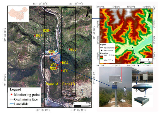 Overview of the study area and distribution of Global Navigation Satellite System (GNSS) monitoring points.